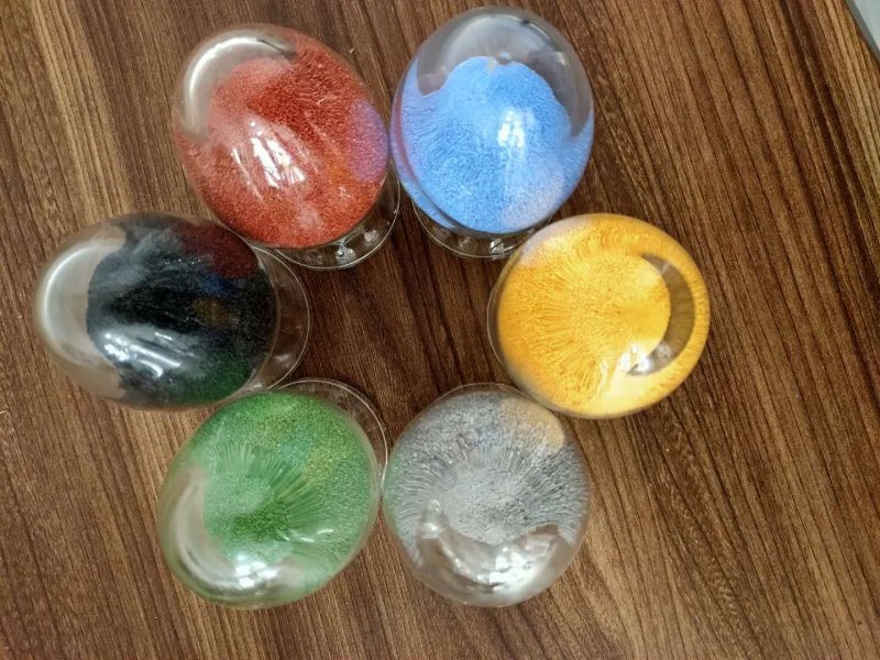 彩砂现分为天然彩砂、烧结彩砂、临时染色彩砂、**染色彩砂。其特点是:颜色鲜艳、耐酸碱、耐紫外线、不褪色。 天然彩砂:是由天然矿石粉碎而成,不褪色但是杂质色较多;临时染色彩砂:颜色鲜艳、易脱色。